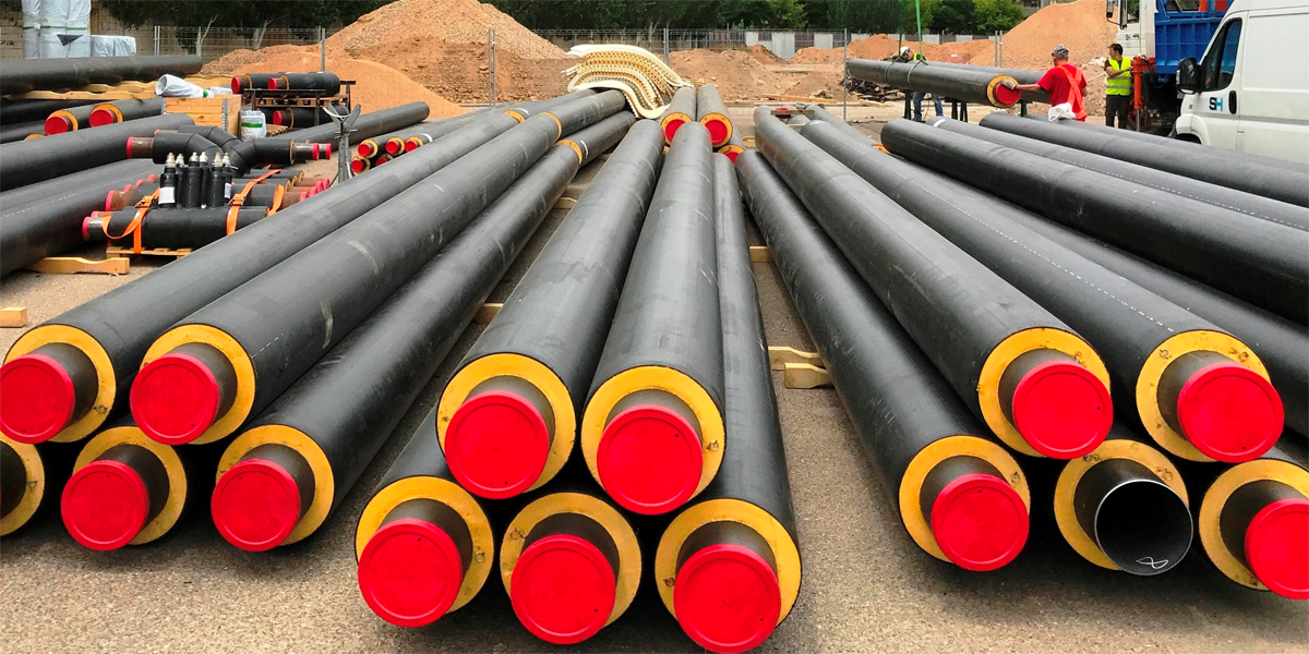 Tuberías que van a ser instaladas en la nueva red de calor con biomasa de Valladolid.