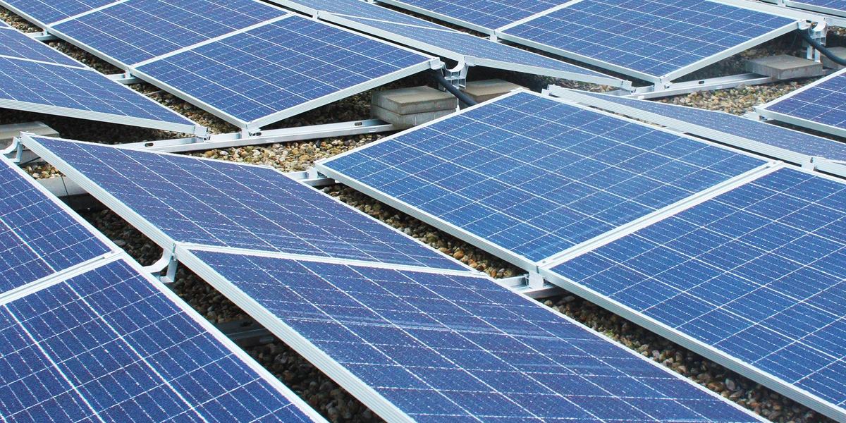 Placas solares fotovoltaicas sobre la cubierta de un edificio.