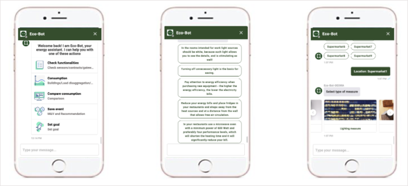 Inicio » Eficiencia Energética » El proyecto Eco-Bot desarrolla un asistente virtual que estudia el gasto energético y mejora la eficiencia con consejos personalizados » ecobot-pantallas-texto