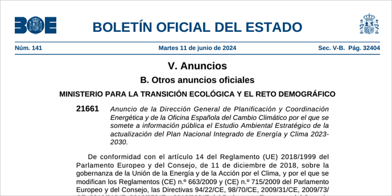 El Estudio Ambiental Estratégico de la actualización del PNIEC 2023-2030 se abre a información pública