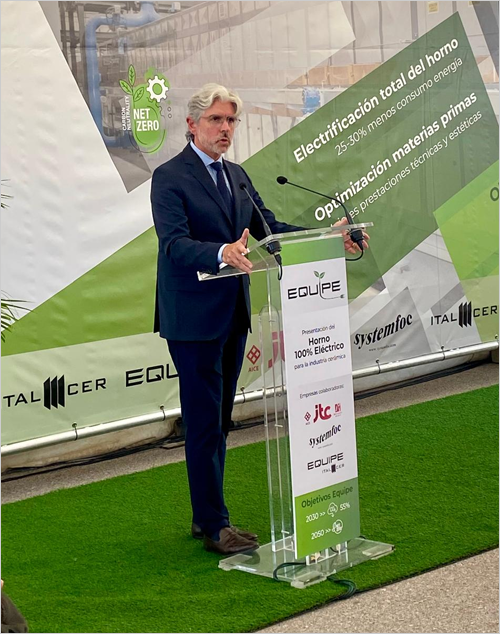 El secretario de Industria, Comercio y Consumo de la Generalitat Valenciana, Felipe Carrasco, durante la presentación del primer horno eléctrico de producción de la industria cerámica. Foto: Generalitat Valenciana.