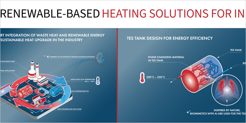El proyecto Susheat ha publicado dos nuevas infografías para explicar de forma visual y resumida varias soluciones en desarrollo: la funcionalidad de la recuperación de calor residual en circuito cerrado para calor industrial y el diseño de tanques de almacenamiento de energía térmica (TES) para una mayor eficiencia energética. Las infografías reflejan el objetivo principal del proyecto, que es lograr que el calor renovable de alta temperatura sea técnicamente viable, económicamente atractivo y operativamente fiable para sectores que hoy en día todavía dependen en gran medida de los combustibles fósiles.
