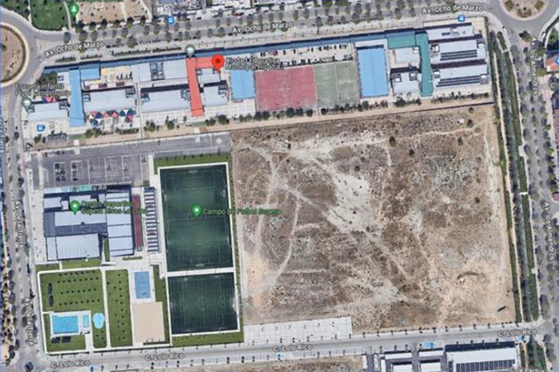 Vista aérea de los terrenos de la escuela Hipatia.